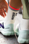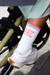 Ces chaussettes mi-mollet ont été pensées pour accompagner chaque moment de la journée, du matin jusqu’à la nuit. Leur design associe une esthétique joyeuse à des messages inspirants placés à l’arrière de la jambe, pour garder le sourire et l’énergie à chaque pas, que ce soit à vélo ou à pied.