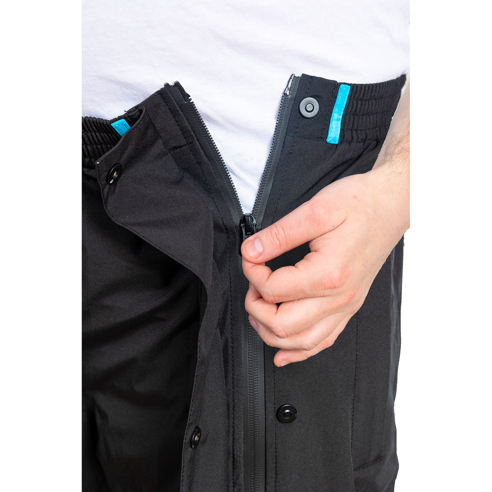 Grâce à ses fermetures éclair imperméables double sens sur toute la longueur, ce pantalon s’enfile facilement sans retirer ses chaussures. Il est doté d’un rabat magnétique, d’une taille élastique et de détails réfléchissants placés sur les deux jambes pour plus de sécurité. Les coutures étanchées renforcent la protection contre l’eau, et la coupe ajustée garantit confort et liberté de mouvement.