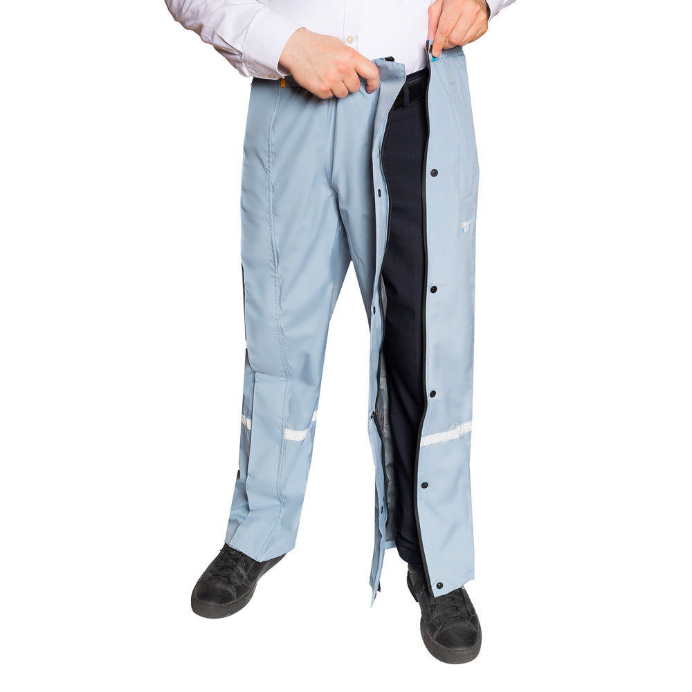 Grâce à ses fermetures éclair imperméables double sens sur toute la longueur, ce pantalon s’enfile facilement sans retirer ses chaussures. Il est doté d’un rabat magnétique, d’une taille élastique et de détails réfléchissants placés sur les deux jambes pour plus de sécurité. Les coutures étanchées renforcent la protection contre l’eau, et la coupe ajustée garantit confort et liberté de mouvement.