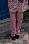 Le pantalon est proposé en taille unique ajustable, adaptée aux tailles 34 à 44 et aux silhouettes de 1,60 m à 1,82 m. Il s’ajuste facilement grâce à un élastique et un cordon de serrage à la taille.