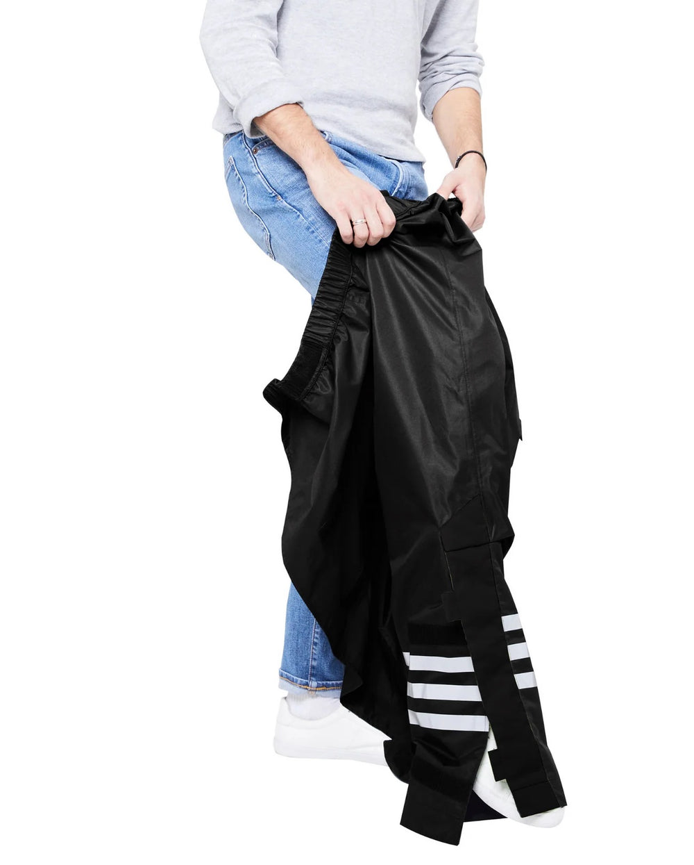 Le pantalon de pluie Optimiste est conçu pour être enfilé en quelques secondes, directement par-dessus vos vêtements. Un allié simple et efficace pour continuer à rouler quand la météo se complique.