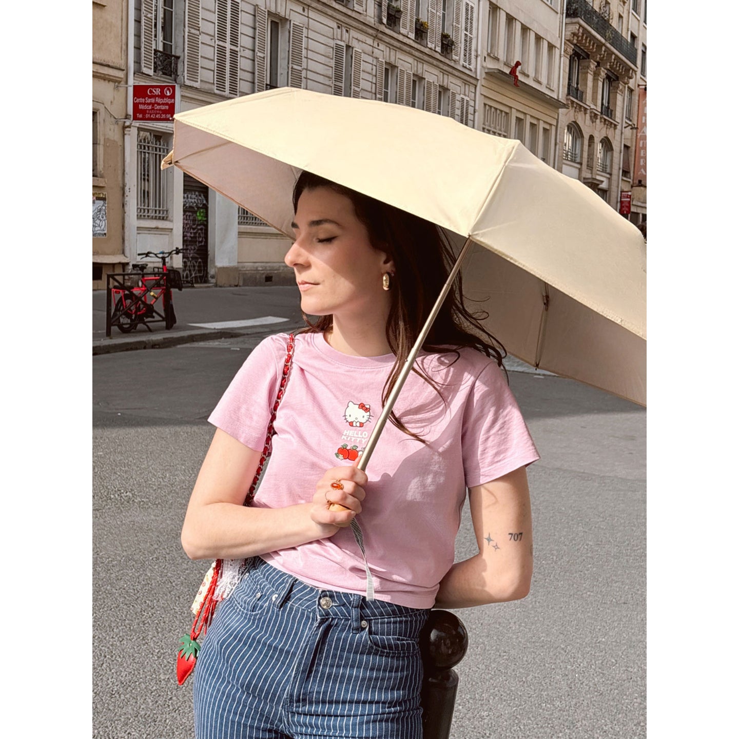 • Parapluie-ombrelle de la marque Anatole - Anti-UV Rayures Rose Poudré