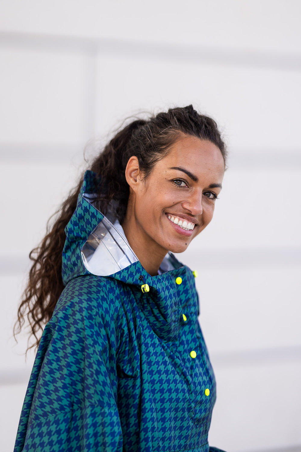 Waterproof Rain Poncho - The Time of Frogs Pied de Poule Marine / Vert