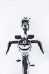With the SR system: aluminum hooks with saddle rails, strap and internal reinforcement. Compatible with straight stems, MTB, carbon stems and aero rails up to 60 mm wide.
